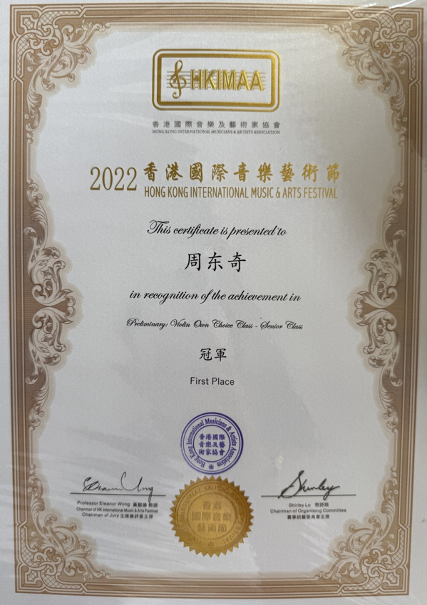 获2022年第六届央音全国青少年艺术展演海南省金奖