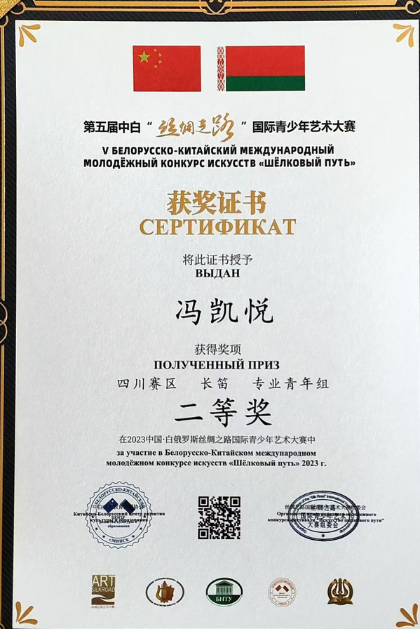 (5)获第二届丝绸之路国际青少年艺术大赛专业青年组二等奖