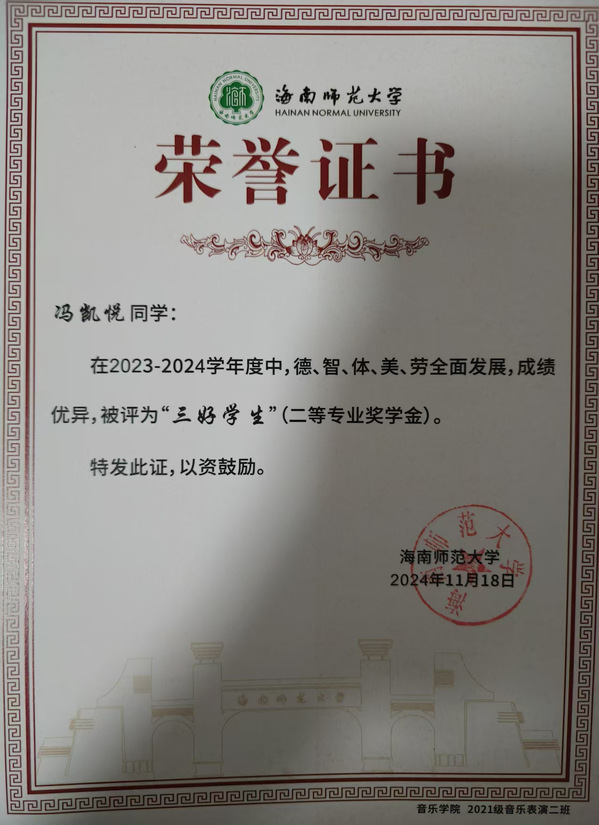 (2)2024年-2025年获“三好学生”称号