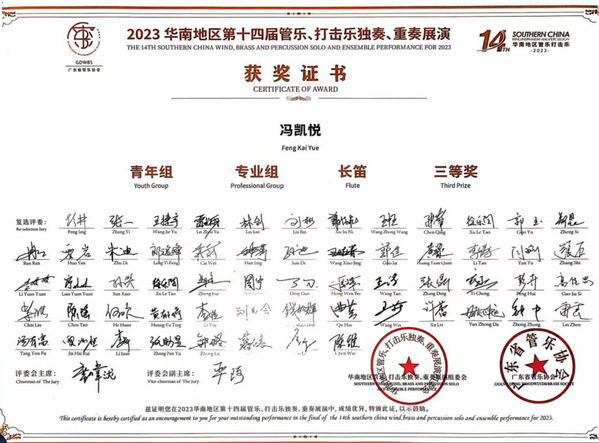 (4)2023年12月获第十四届管弦乐、打击乐专业组第三名