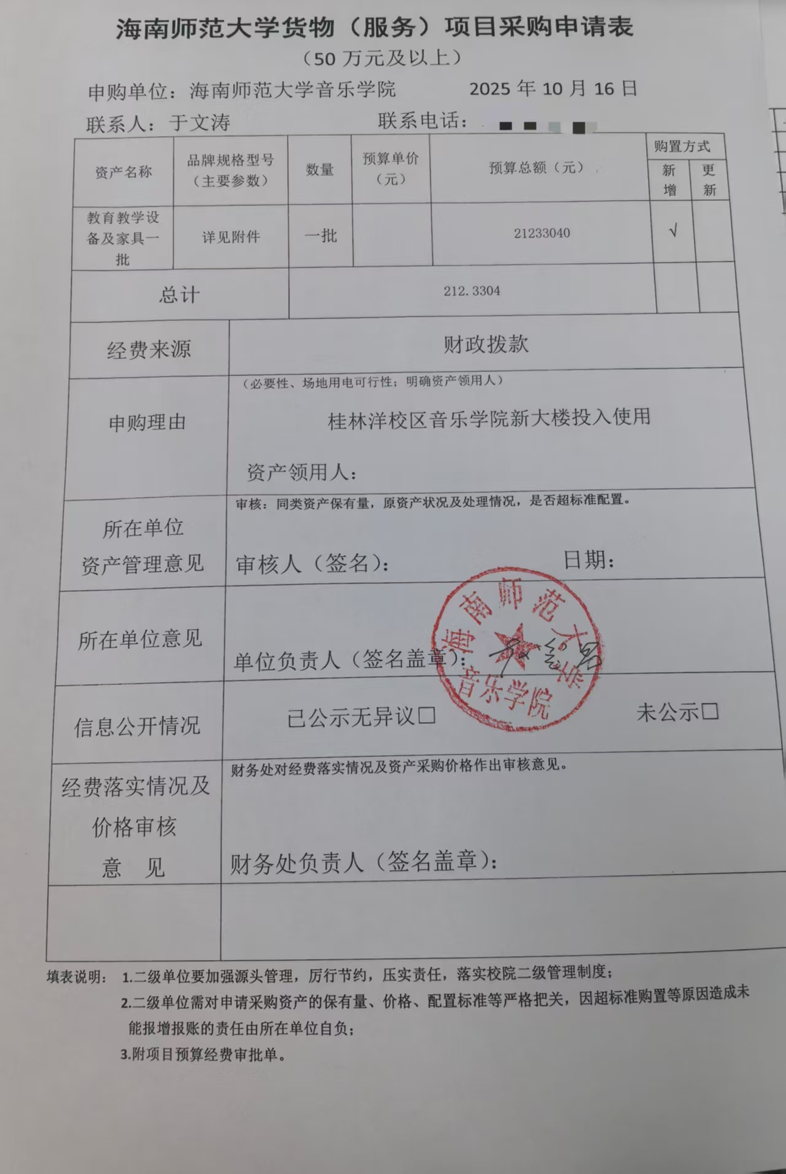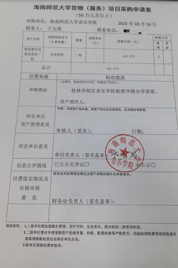 海南师范大学货物(服务)项目采购申请表